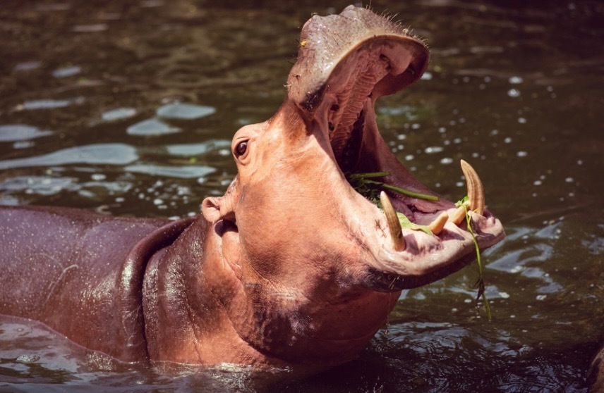 カバは草食動物で、繊維質の多い植物を食べるため、しっかり噛んですりつぶす必要があります。